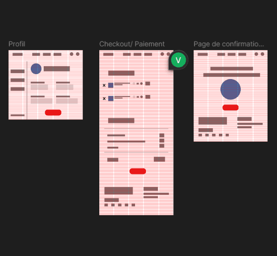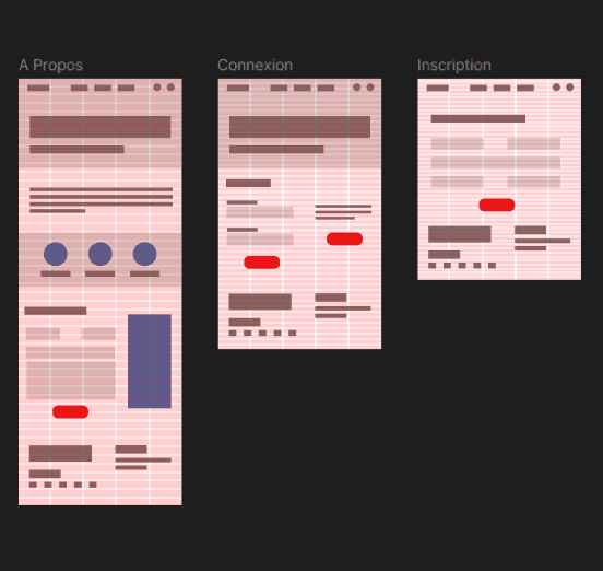 Pour l’instant, le projet est encore en phase de prototypage : les wireframes sont en cours de finalisation. Ils serviront ensuite de base pour travailler le design et il faut que je valide le parcours utilisateur.