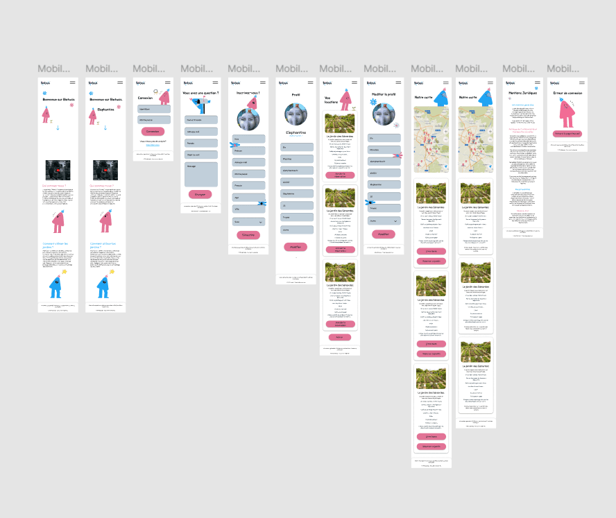 Enfin, je me suis occupée de toutes les maquettes sur Figma, en version mobile et ordinateur. J’ai choisi un agencement simple pour faciliter la prise en main par l’utilisateur, mais aussi en raison du délai assez court imposé par le projet.